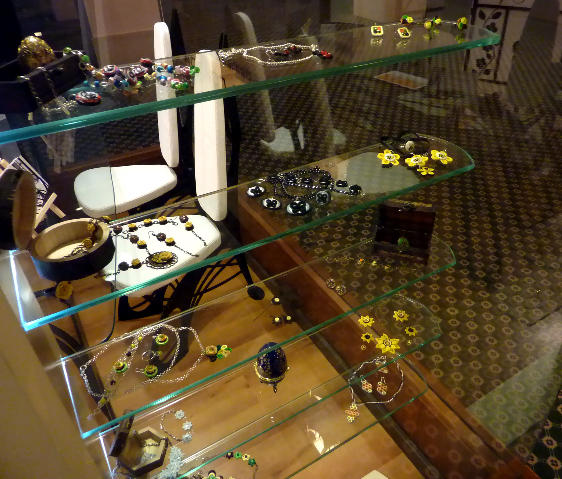 Enfin, inspiré du design d’un escalier contemporain en verre, La Stylique créa une étagère, véritable écrin pour la collection de bijoux de la créatrice Anca, qui expose ses oeuvres de manière permanente dans la galerie.