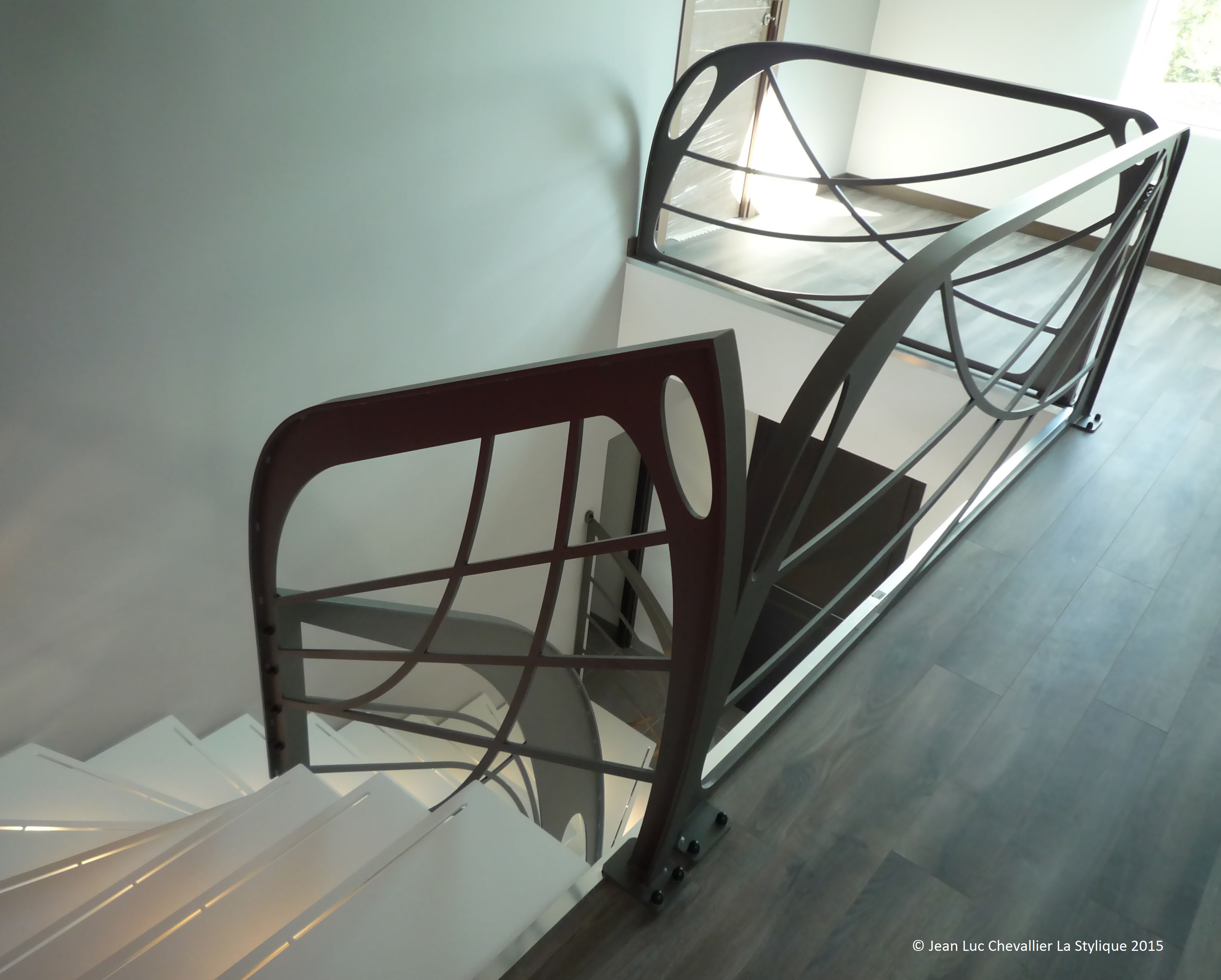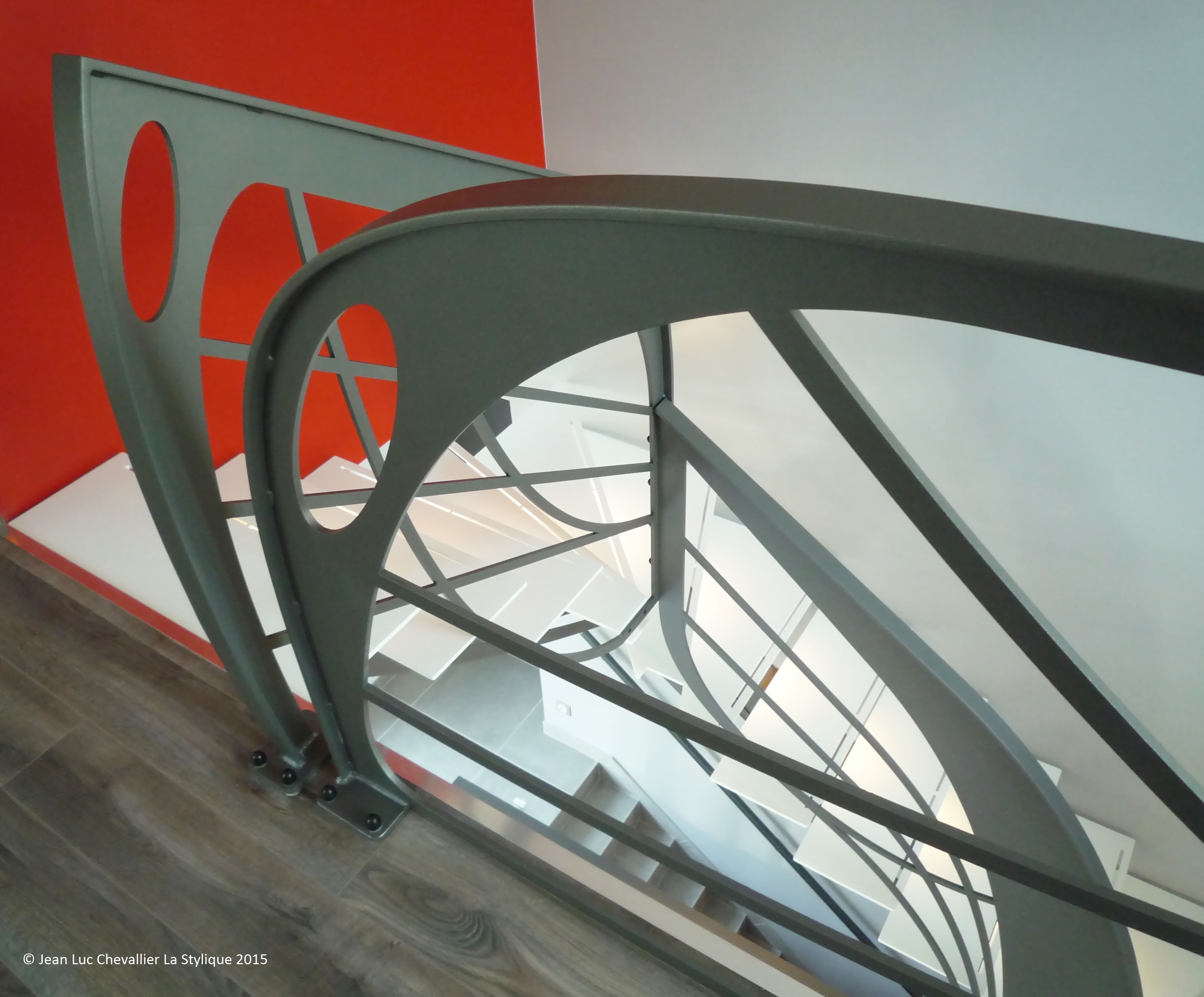 Puis, le créateur d’escalier contemporain dessine des arabesques autour de gardes corps stylisées grâce à son empreinte artistique séduisante et exquise.
