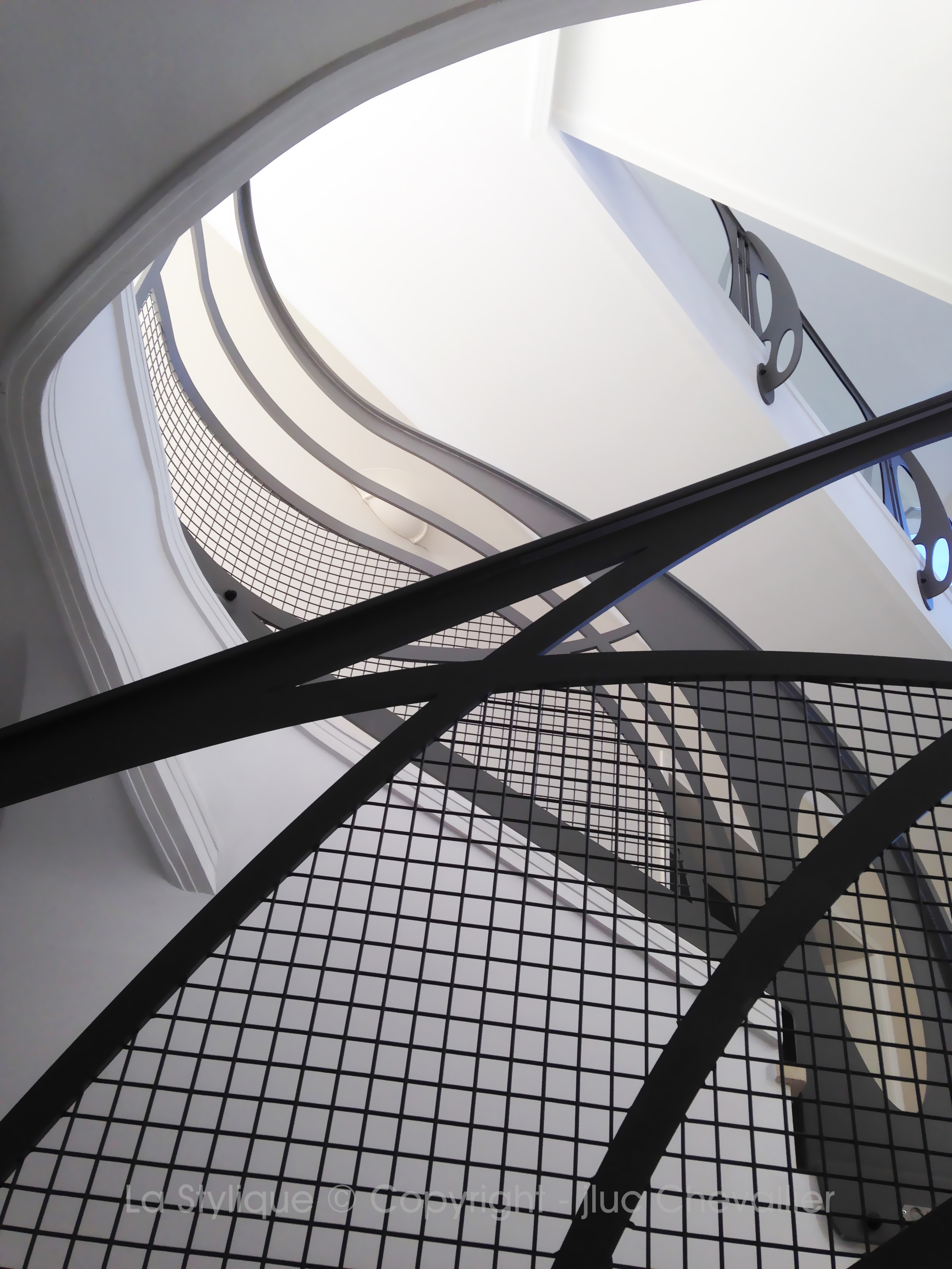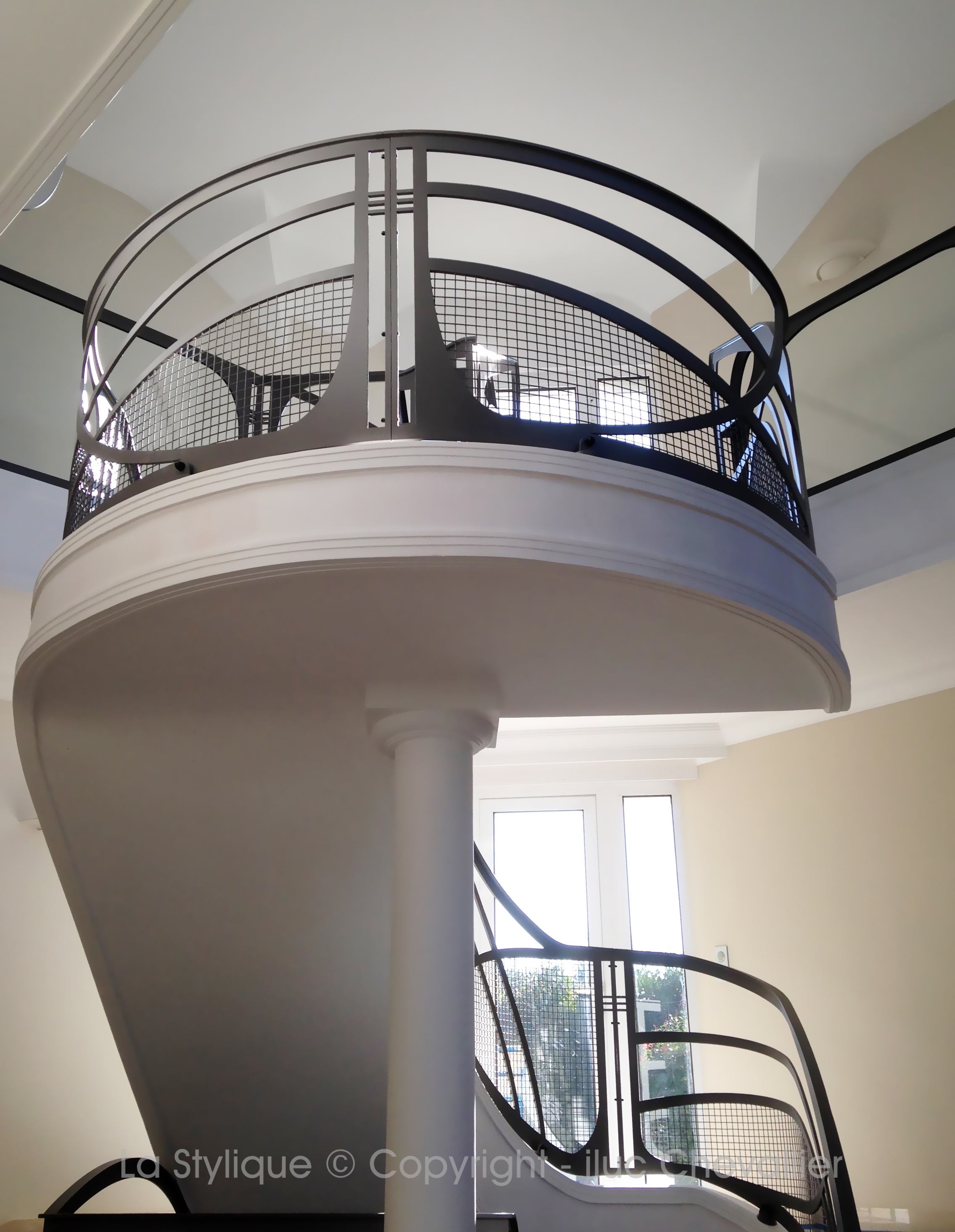 L’ensemble de garde-corps design composé de courbes, de grilles et de lignes épouse l’ossature de la bâtisse et s’interpose telles des notes en harmonie dans une portée musicale: magnifiant ainsi la structure devenant sculpture architecturale.