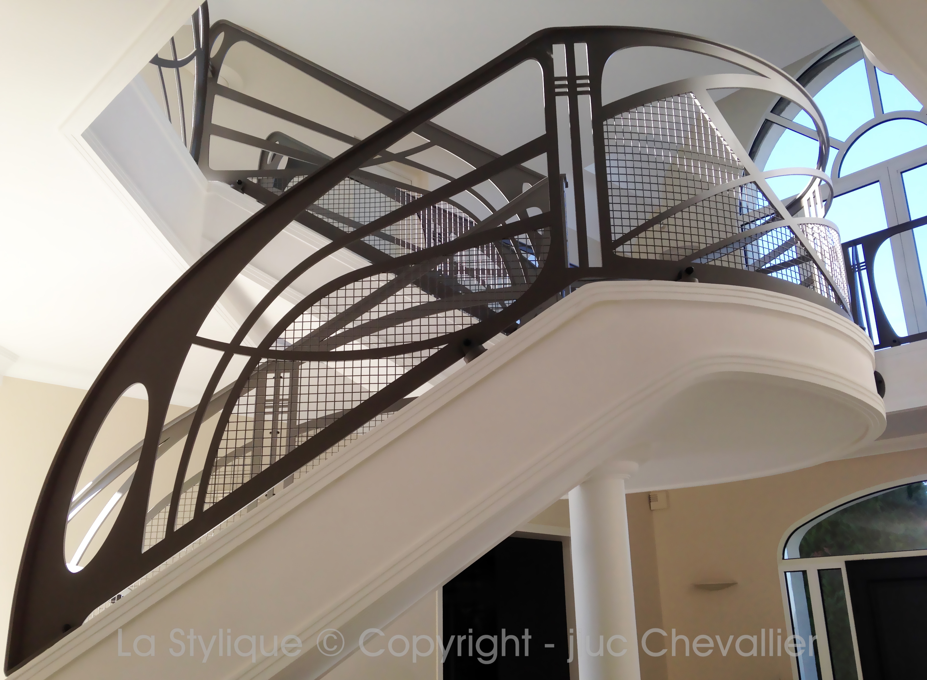 Le designer du studio La Stylique Jean Luc Chevallier, grand amoureux d’Art Nouveau et d’Art Déco exprime tout son Art et savoir-faire dans l’espace du contemporain: le métal devient son pinceau et la demeure sa toile blanche, le résultat sublime l’intérieur moderne et devient une véritable pièce unique.