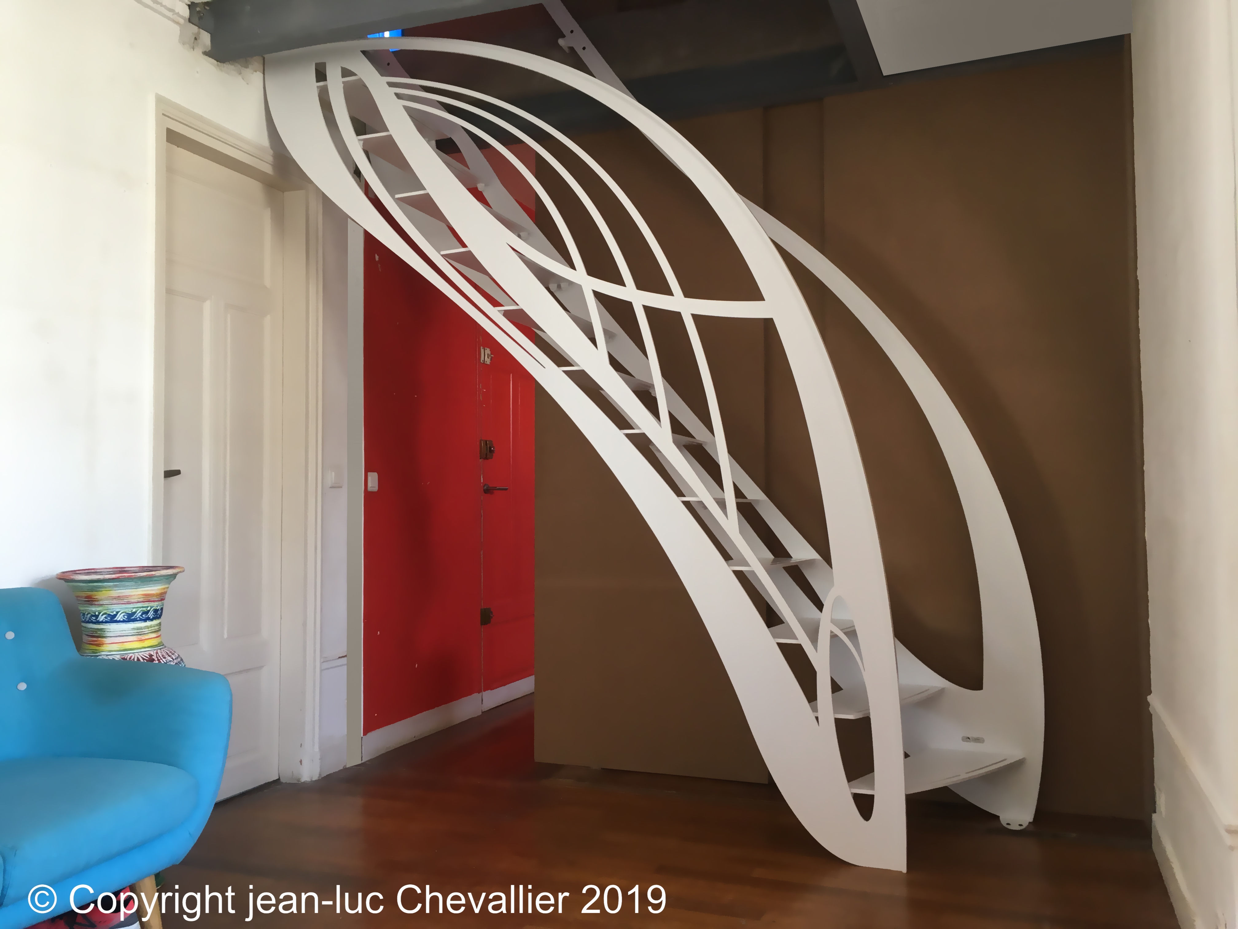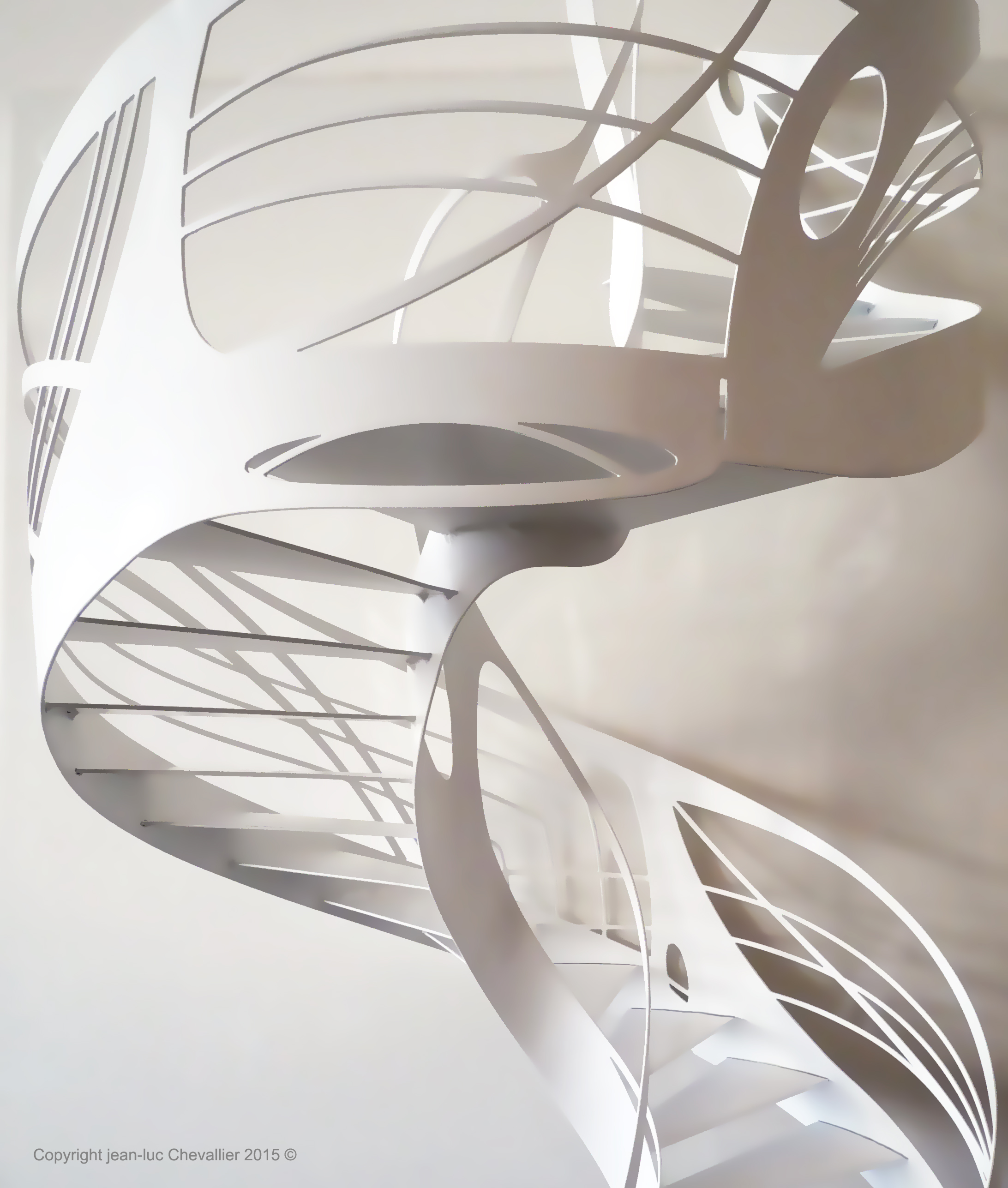 Ainsi, les courbes de l’escalier design qui rappellent celles d’une clé de sol ou des ailes d’un papillon, prennent forme dans les esquisses du designer.